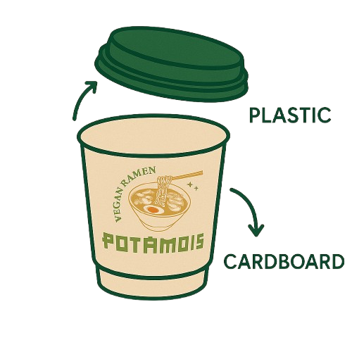 Sustainability is at the core of Potamois. The ramen comes in an eco-friendly cardboard cup paired with a recyclable plastic lid, helping reduce environmental impact while maintaining convenience. From ingredients to packaging, every detail is thoughtfully designed to support a more planet-friendly way of eating.